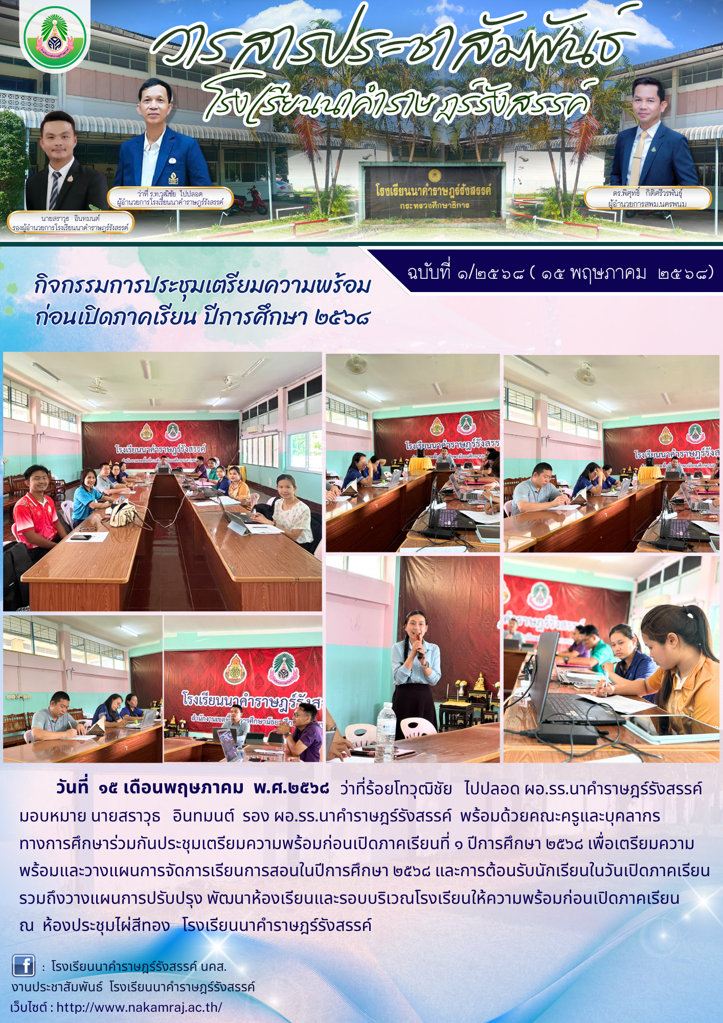 - วารสารประชาสัมพันธ์ ฉบับที่ 1/2568 วันที่ 15 พฤษภาคม 2568 : กิจกรรมการประชุมเตรียมความพร้อมก่อนเปิดภาคเรียน
