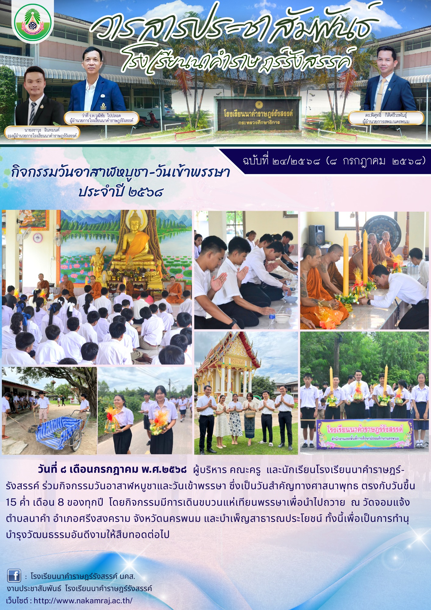 - วารสารประชาสัมพันธ์ ฉบับที่ 24/2568 วันที่ 8 กรกฎาคม 2568 : กิจกรรมวันอาสาฬหบูชาและวันเข้าพรรษา ประจำปี 2568