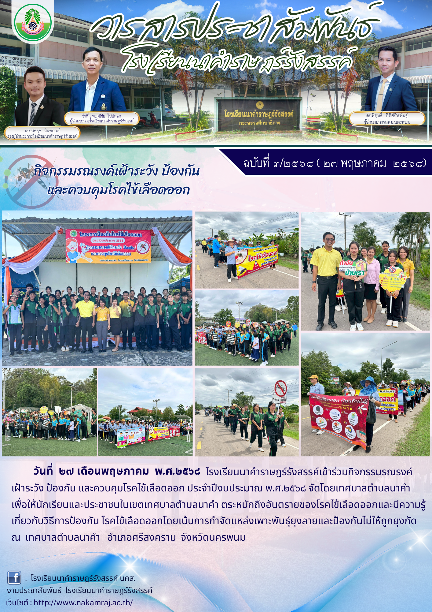 - วารสารประชาสัมพันธ์ ฉบับที่ 3/2568 วันที่ 27 พฤษภาคม 2568 : กิจกรรมรณรงค์เฝ้าระวัง ป้องกัน และควบคุมโรคไข้เลือดออก