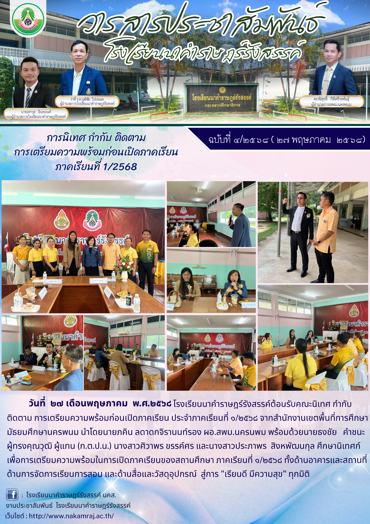 วารสารประชาสัมพันธ์ ฉบับที่ 4/2568 วันที่ 27 พฤษภาคม 2568 : การนิเทศ กำกับ ติดตาม การเตรียมความพร้อมก่อนเปิดภาคเรียน